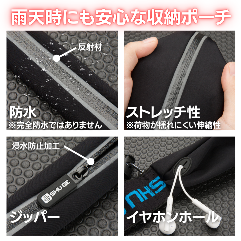 - 強い力で引っ張ると、ベルト部分やポーチが裂けたり、縫製の糸がほどけることがございます。